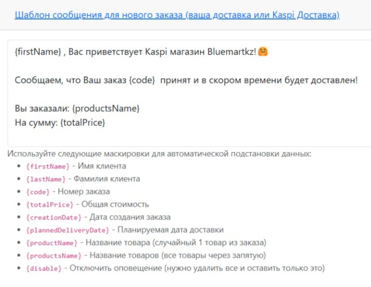 При необходимости редактируете шаблоны сообщений под себя. Вы можете вставлять в шаблоны ссылку для оценки товара, название товара и т.д (наш сервис автоматически подставит нужные данные)